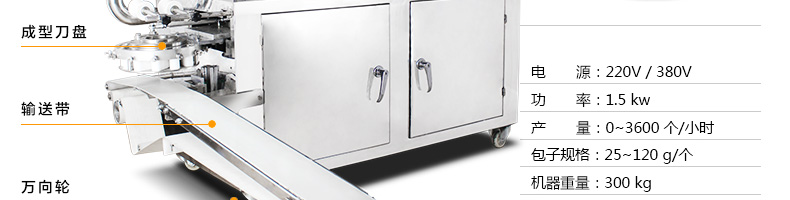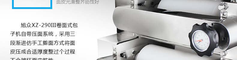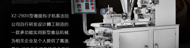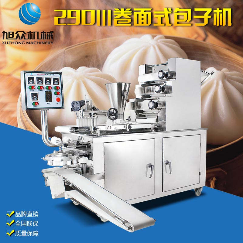290III卷面式包子机,可生产各种不同馅料的包子、各式包馅食品,如豆沙包、南瓜饼、肉包、小笼包、水晶包等几十种包馅制品。适用于个体户、食品厂、学校等单位食堂。可满足不同客户群体。免费提供工艺技术。