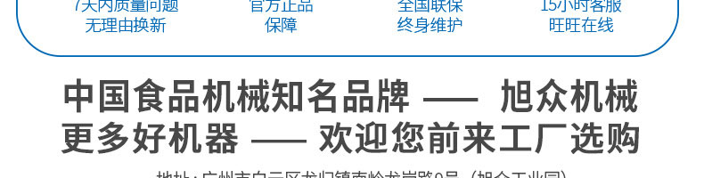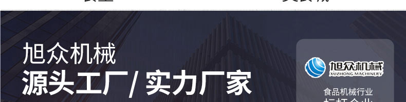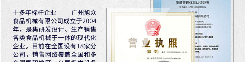广州旭众食品机械有限公司是一家集科研开发,生产设计,营销服务为一体的现代化生产企业。现代化生产车间,精湛制造技术,所产机械历经市场重重考验,不断赢得海内外客户的赞誉。